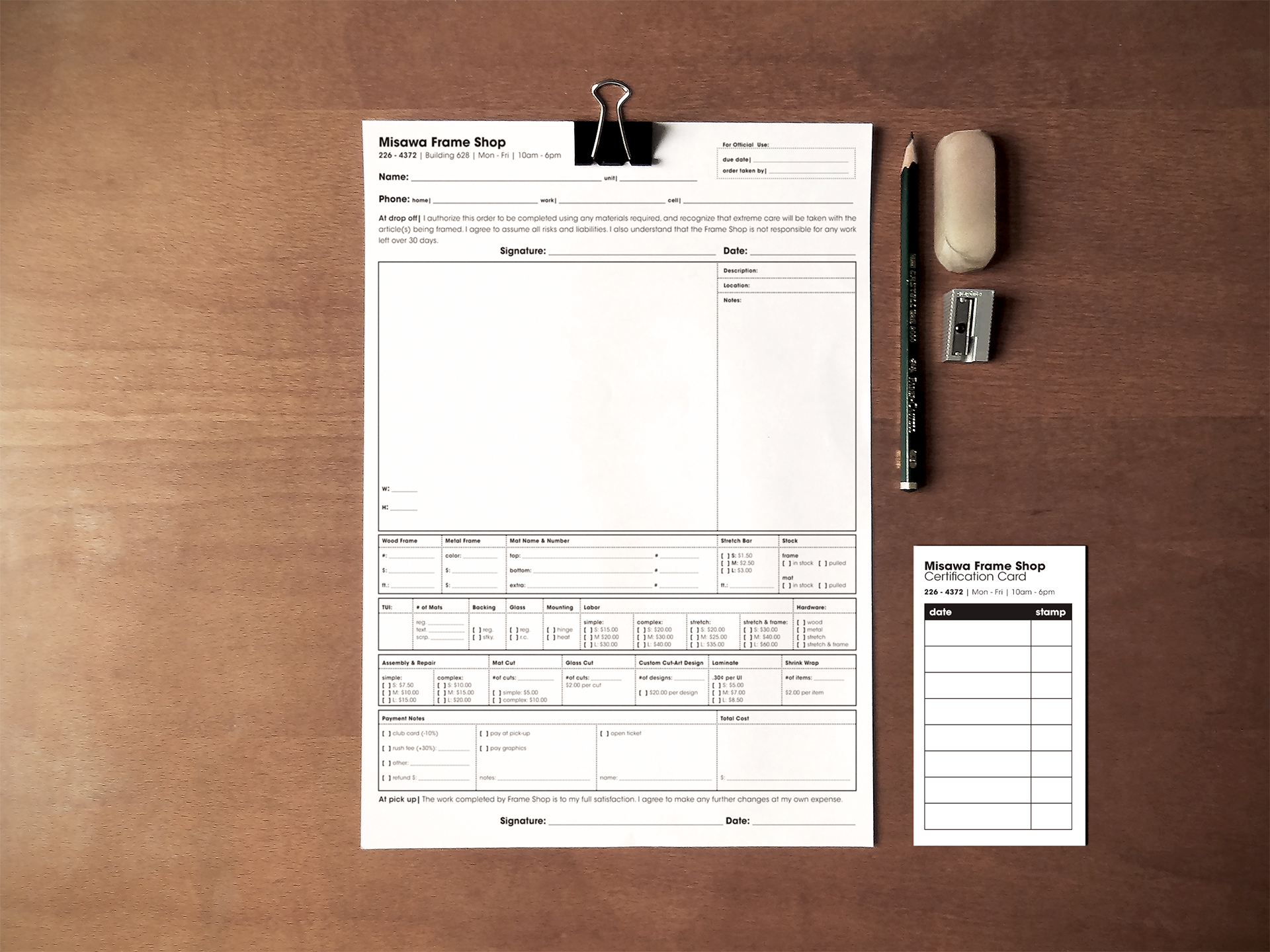 Project | Frame Shop work order intake form