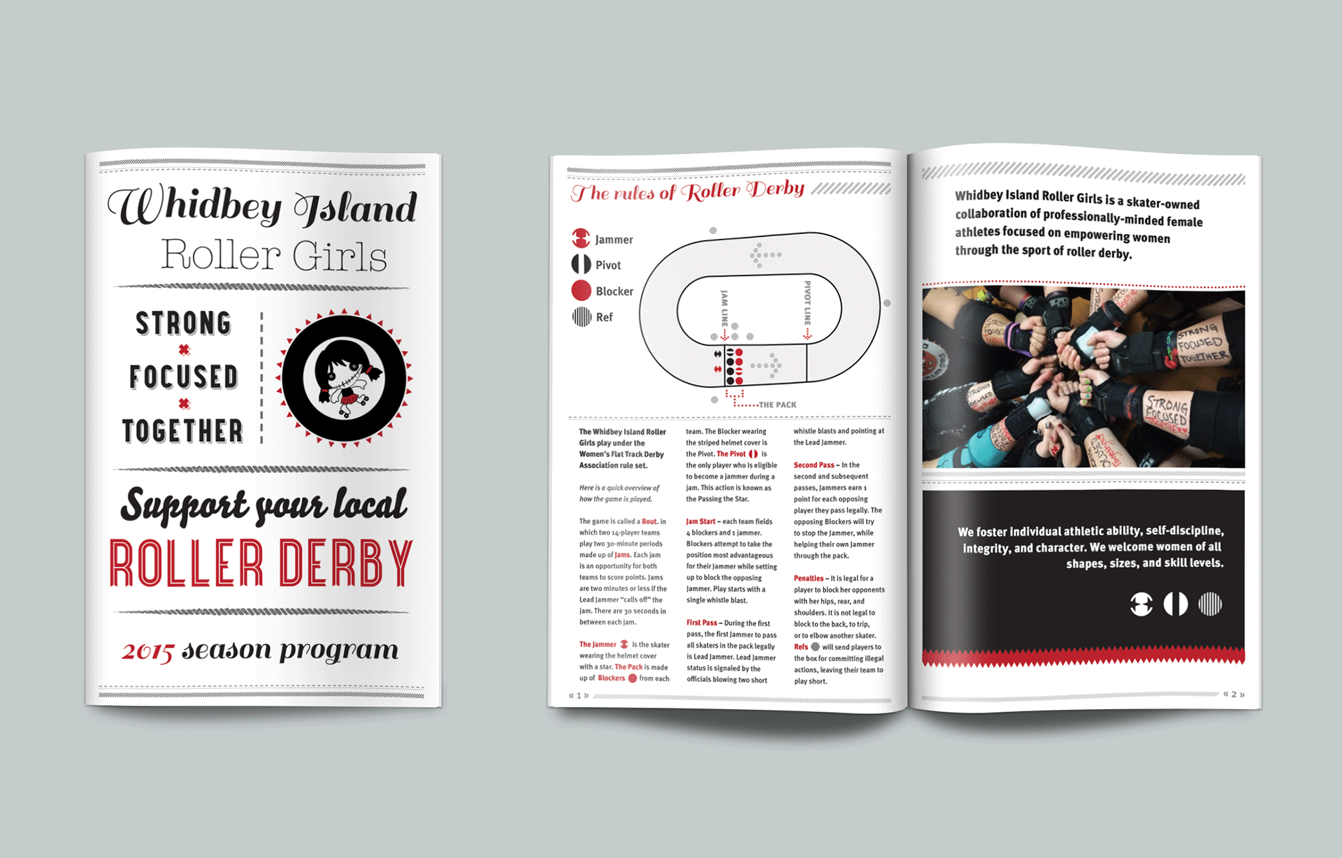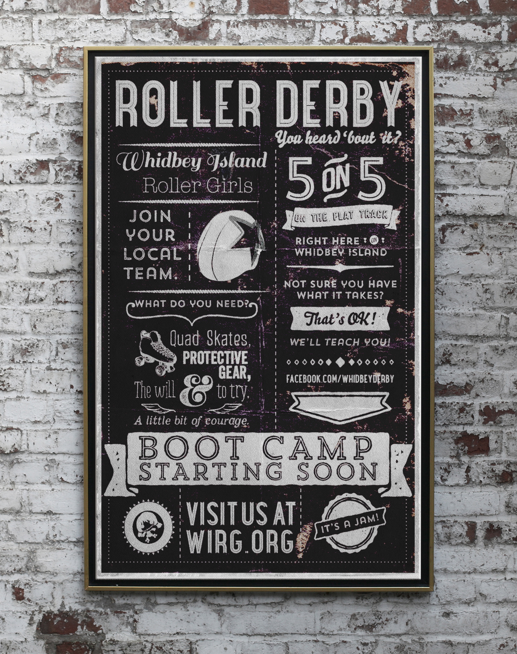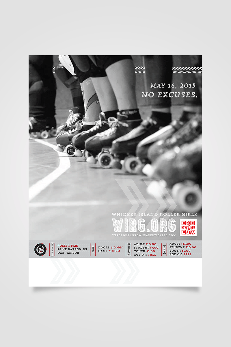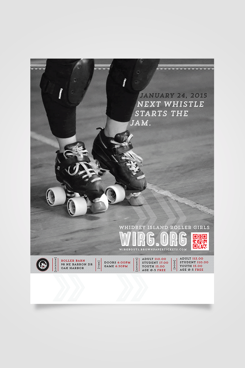This campaign for the Whidbey Island Roller Girls creates an updated logo, develops a consistent visual language, and invokes the team’s core principals—acceptance, athleticism, and good sportsmanship—while also accommodating the practical needs of their fluctuating recruitment initiative.