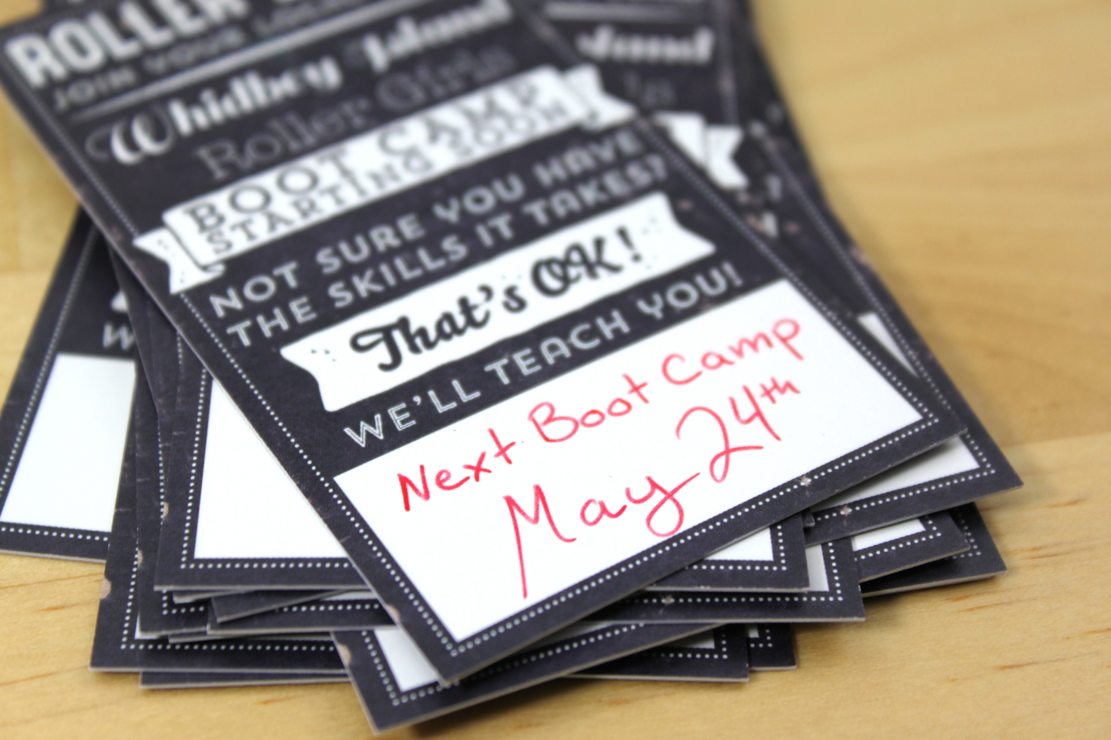 Visually the system is comprised of dense layouts, textured elements, and flamboyant typography to reflect the playful, showmanship oriented nature of the sport. The poster designs integrate inclusive messaging and rule-specific roller derby terminology, reinforcing the team’s values. The bootcamp poster is free of date specific information and can be used in perpetuity, while the recruiting and business cards allocate dedicated a space for additional handwritten information.