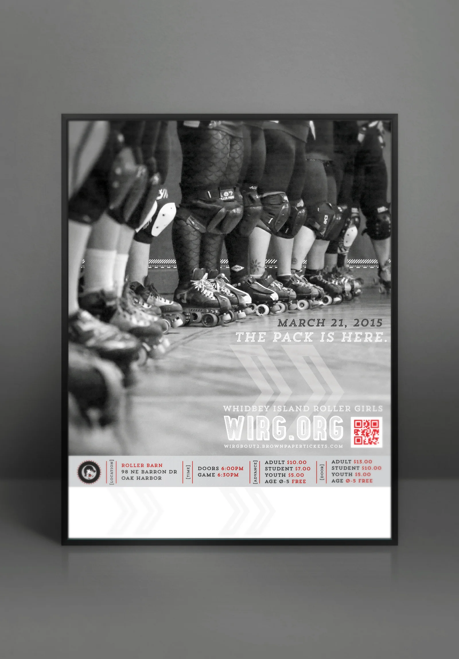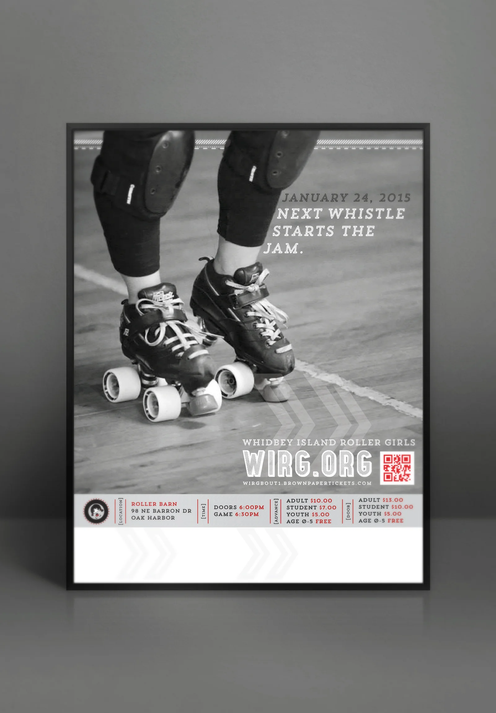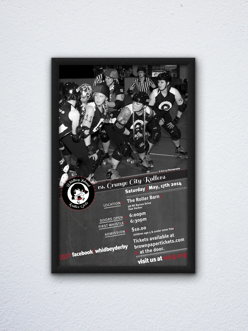 I collaborated with the Whidbey Island Roller Girls on a wide array of design needs for the team, including an updated Logo, Posters, Business Cards, Event Signage and other Print Collateral, Apparel Design, Web Design and Social Media Management.