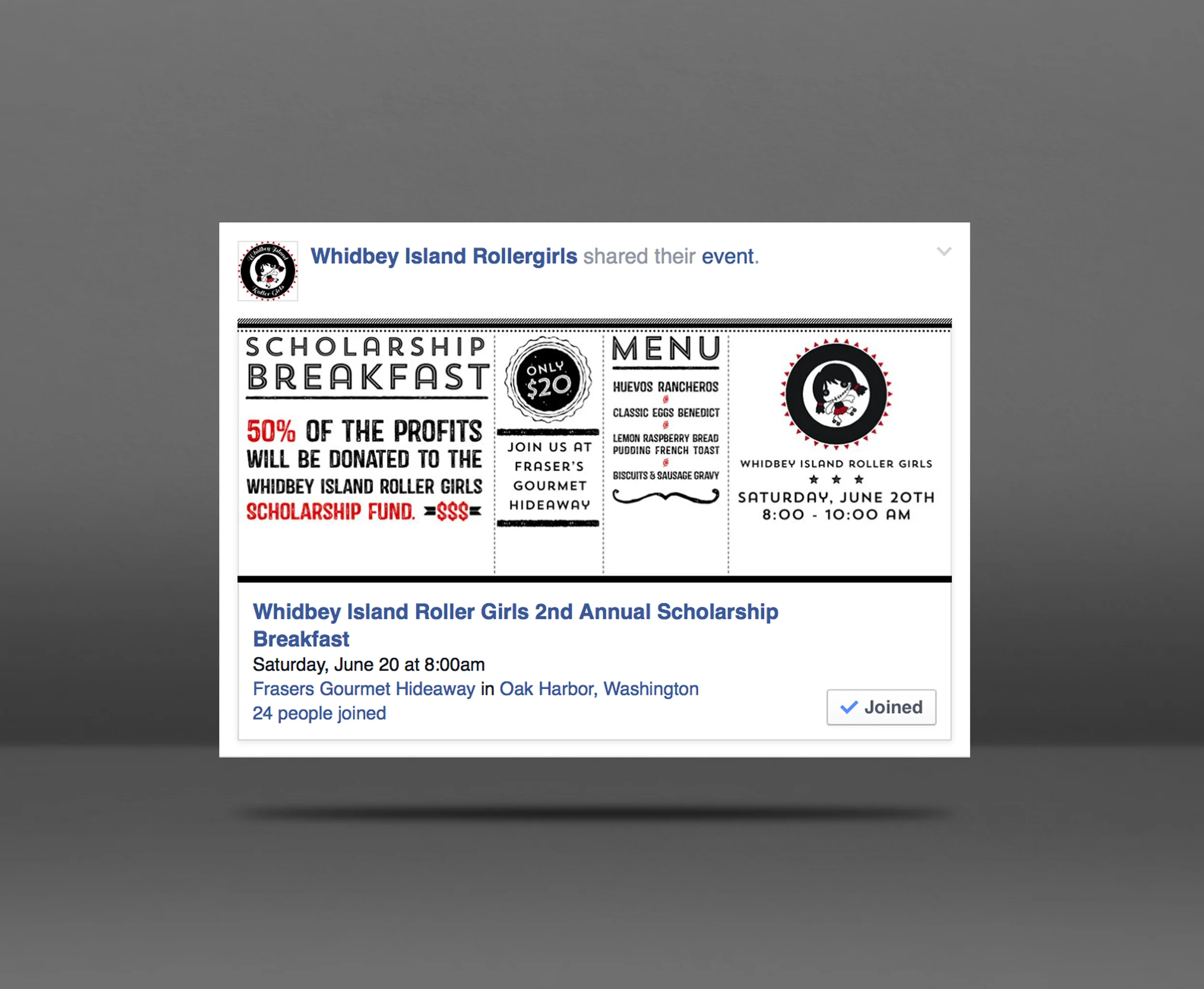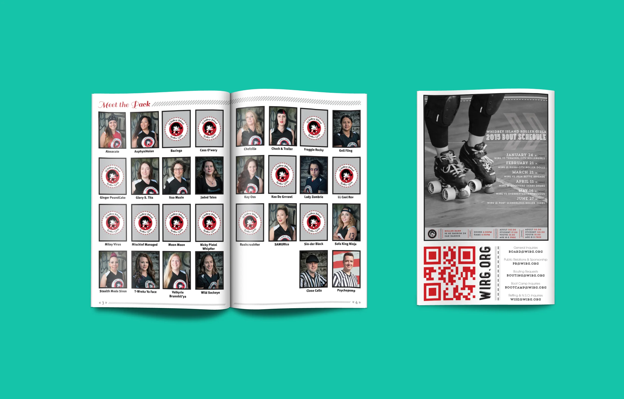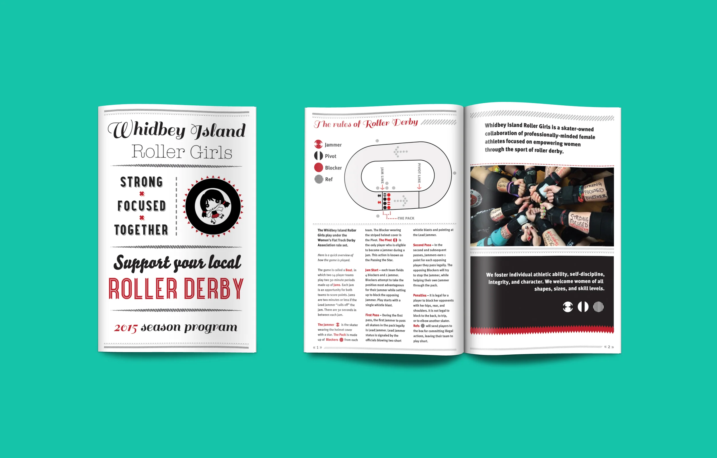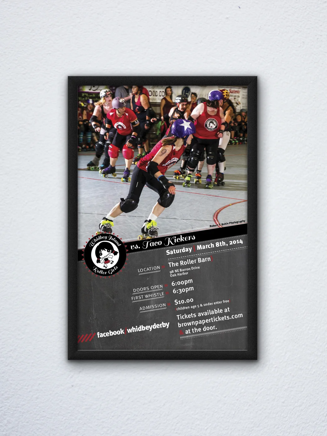 I collaborated with the Whidbey Island Roller Girls on a wide array of design needs for the team, including an updated Logo, Posters, Business Cards, Event Signage and other Print Collateral, Apparel Design, Web Design and Social Media Management.